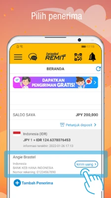 PENTING: Aplikasi ini HANYA dapat digunakan di Jepang. TIDAK dapat digunakan untuk mengirim uang dari negara LAIN selain JEPANG. Jika Anda memiliki rekening Japan Post Bank, kirim uang langsung dari rekening Anda ke Aplikasi Brastel Remit Anda (dari ATM Japan Post Bank, counter, atau Internet Banking).