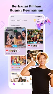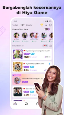 Obrolan Suara Grup Bergabunglah dengan ruang obrolan grup dan mulai pesta obrolan suara dengan komunitas yang seru. Hiya Game adalah aplikasi luar biasa yang memungkinkan Anda berbicara dengan banyak pemain menarik dengan mudah. Berinteraksi dengan sesama gamers untuk memperluas jaringan pertemanan online Anda.