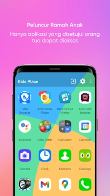 • Mode berjalan di latar. Kids Place tidak akan dipakai sebagai launcher atau layar home. Mode ini cocok untuk anak lebih tua atau di atasnya