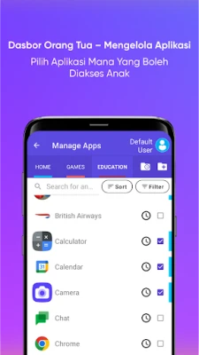 • Layar home hanya menampilkan aplikasi yang diizinkan oleh orang tua