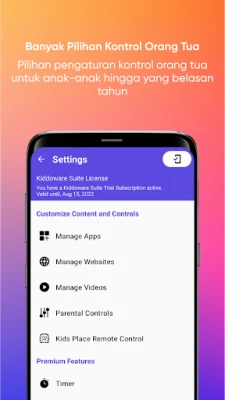 • Timer - Fitur Timer untuk membatasi akses ke aplikasi setelah waktu tertentu.