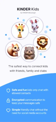 KINDER Kids adalah aplikasi yang dirancang khusus untuk anak-anak yang memungkinkan mereka untuk mengadopsi dan mengobrol dengan hewan peliharaan virtual yang edukatif, atau membuat Floofs lucu dan membagikannya dengan teman-teman. Dengan aplikasi ini, orang tua dapat tetap mengontrol komunikasi anak-anak mereka, melacak lokasi mereka, dan melakukan banyak hal lainnya. KINDER Kids bekerja secara mulus dengan aplikasi KINDER Family, yang memungkinkan seluruh keluarga tetap terhubung dan terorganisir.