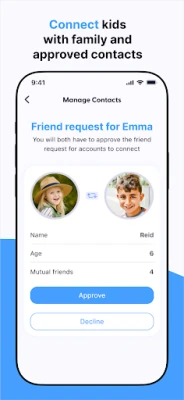 Orang tua dapat membuat akun untuk anak-anak mereka dan memutuskan siapa saja yang dapat mereka ajak bicara. Anak-anak hanya dapat berkomunikasi dengan kontak yang disetujui oleh orang tua. Tidak ada nomor telepon, alamat email, atau akun media sosial yang diperlukan untuk membuat akun anak-anak.