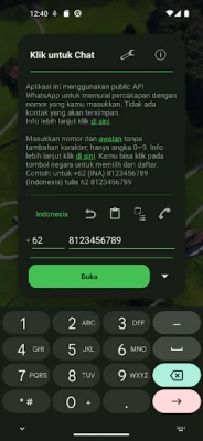 Saya sadar beberapa pengguna menggunakan aplikasi untuk tujuan bisnis. Saya senang aplikasi saya membantu Anda menjadi lebih produktif, tetapi tolong jika Anda menggunakan aplikasi untuk tujuan komersial pertimbangkan dukungannya. Saya ingin proyek pribadi kecil ini tetap menjadi aplikasi gratis tanpa iklan atau pembelian dalam aplikasi, dan kemajuan serta pembaruan didasarkan pada penerimaan dan dukungan dari Anda. Ada versi donasi yang bisa kamu beli untuk membantu pengembangan aplikasi ini: https://play.google.com/store/apps/details?id=com.trianguloy.openInWhatsapp.donation