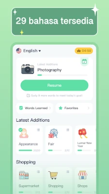 Mengapa orang ketagihan bermain game? Bukan hanya karena mereka menyenangkan tetapi juga karena Anda bisa mendapatkan masukan tentang semua yang Anda lakukan, dan mereka membantu Anda menetapkan tujuan. Sekarang kami telah mengintegrasikan aspek-aspek ini ke HelloWords. Anda akan merasa terhibur selagi belajar juga!