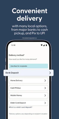 • Kirim transfer uang ke sekitar 470.000 pilihan penarikan tunai di seluruh dunia, termasuk dompet digital dan berbagai mata uang, termasuk Elektra / Banco Azteca, Caribe Express, Unitransfer, Palawan Pawnshop, OXXO, EbixCash, Punjab National Bank, Weizmann Forex, dan lainnya