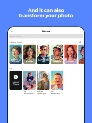 Write anything in English or Russian, and the Yandex neural network will turn your description into a picture, video, or text. You can also use filtrums to recreate you photos. You can also recreate your photos using filtrums. It’s absolutely free: just download the app and dive into the world of digital art.