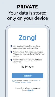 Zangi adalah sebuah aplikasi pesan instan yang menawarkan keamanan dan privasi yang tinggi kepada penggunanya. Salah satu fitur utama dari aplikasi ini adalah bahwa data pengguna disimpan secara eksklusif di ponsel pengguna, sehingga tidak ada data yang dikumpulkan oleh pihak ketiga. Hal ini memberikan rasa aman dan nyaman bagi pengguna karena tidak ada risiko data mereka disalahgunakan.